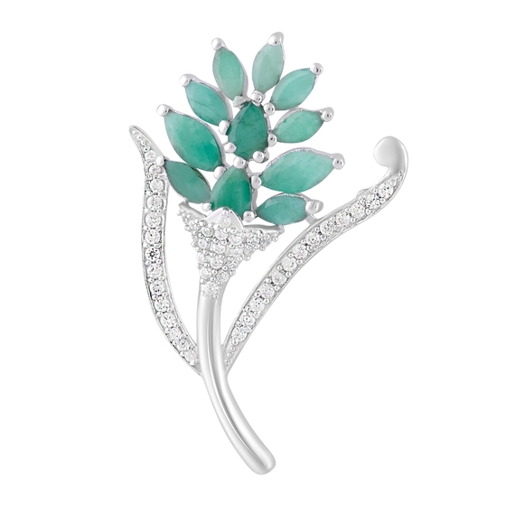 Брошка 925 пробы с натуральным изумрудом 4.447ct. Вес украшения 5,38г. Физический размер изделия (высота*ширина): 43x30мм. Страна происхождения: Индия.