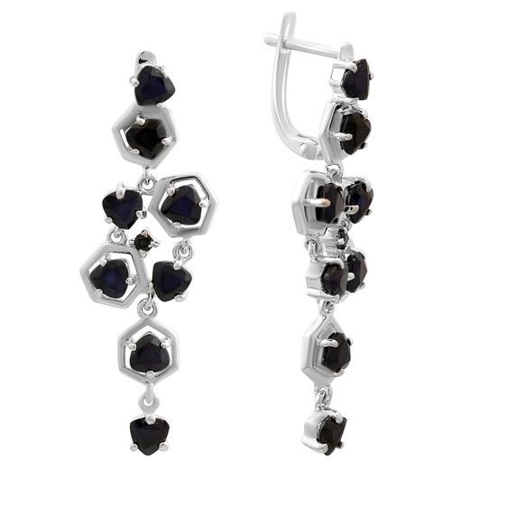 Серьги 925 пробы с натуральным сапфиром 5.985ct. Вес украшения 7,85г. Физический размер изделия (высота*ширина): 40х12мм. Страна происхождения: Индия.