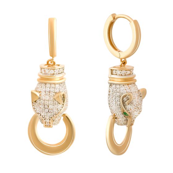 Серьги 585 пробы с фианитами 1.4ct. Вес украшения 10,19г. Физический размер изделия (высота*ширина): 40х15мм. Страна происхождения: Украина.