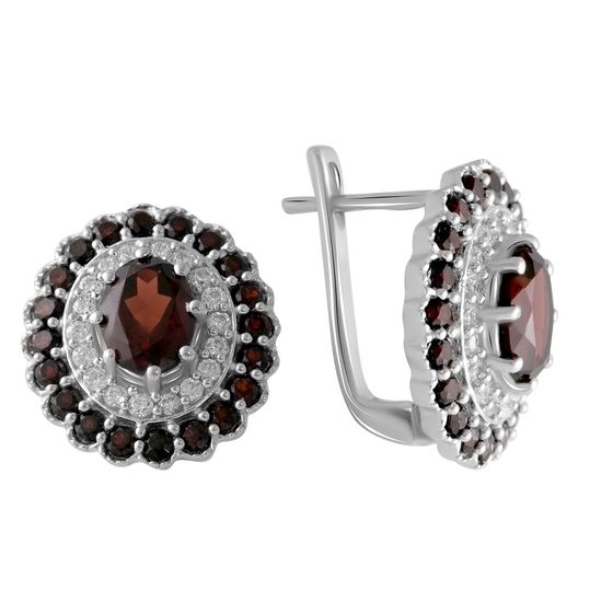 Серьги 925 пробы с натуральным гранатом 5.963ct. Вес украшения 6,26г. Физический размер изделия (высота*ширина): 18х14мм. Страна происхождения: Индия.